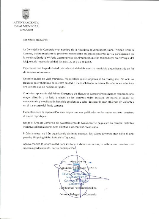 Como todo el mundo sabe, desde el lugar mas poblado hasta el mas recóndito....la semana pasada se celebro en Almuñecar (Granada) la XV Feria Gastronómica de Almuñecar, con ella y a la par se realizo una quedada bloguera denominada I Encuentro de Blogueros Gastronómicos....